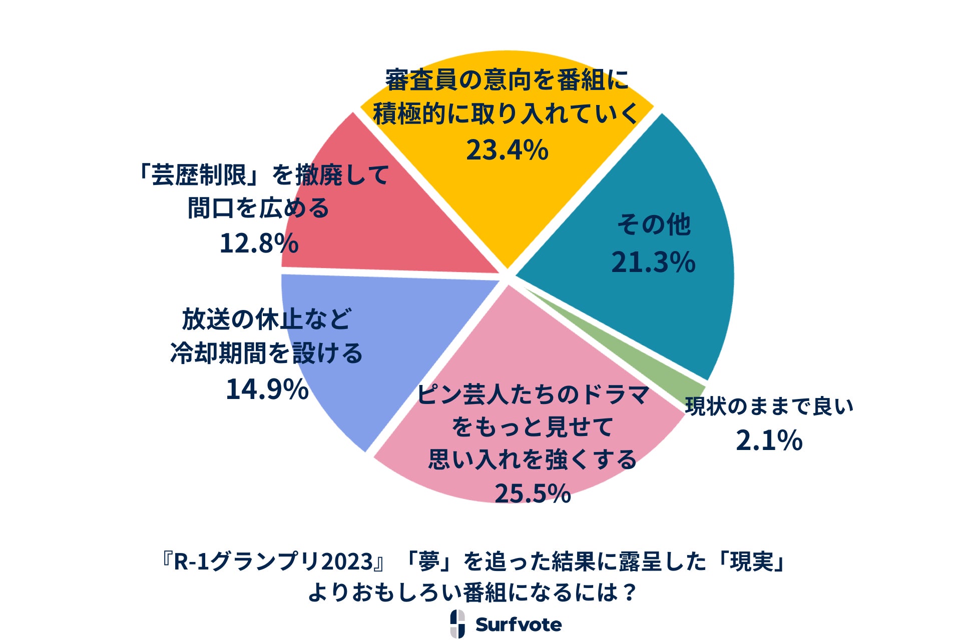 イシュー:「『R-1グランプリ2023』「夢」を追った結果に露呈した「現実」、よりおもしろい番組になるには?」https://surfvote.com/issues/do87ofgkwn80