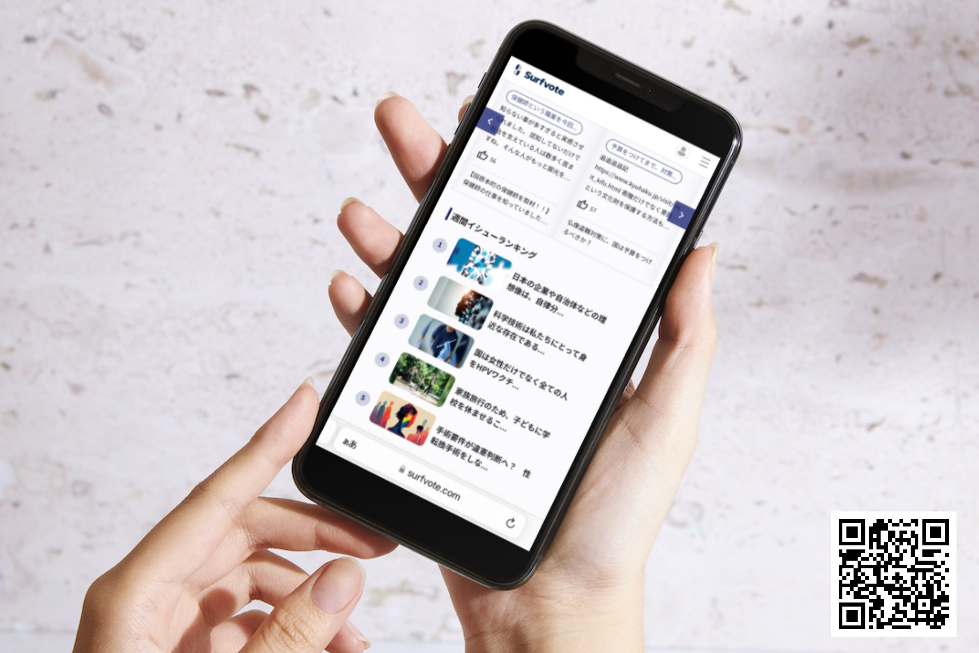 当社が提供するSNS「Surfvote」は社会にあるさまざまな課題を問題提起し、それについて誰もが簡単に意見を投票できるサービスです。Surfvoteでは「イシュー」と呼ばれる各テーマ(課題)に対して複数の選択肢から自分の意見を投票できます。また他のユーザーのコメントを見たり、評価(いいね)したりすることもできます。イシューは当社編集部だけでなく大学の先生やさまざまな分野の専門家にも執筆のご協力をいただき発行しています。投票結果は適宜、関係省庁や政治家へ提出し報告を行なっています。https://surfvote.com/