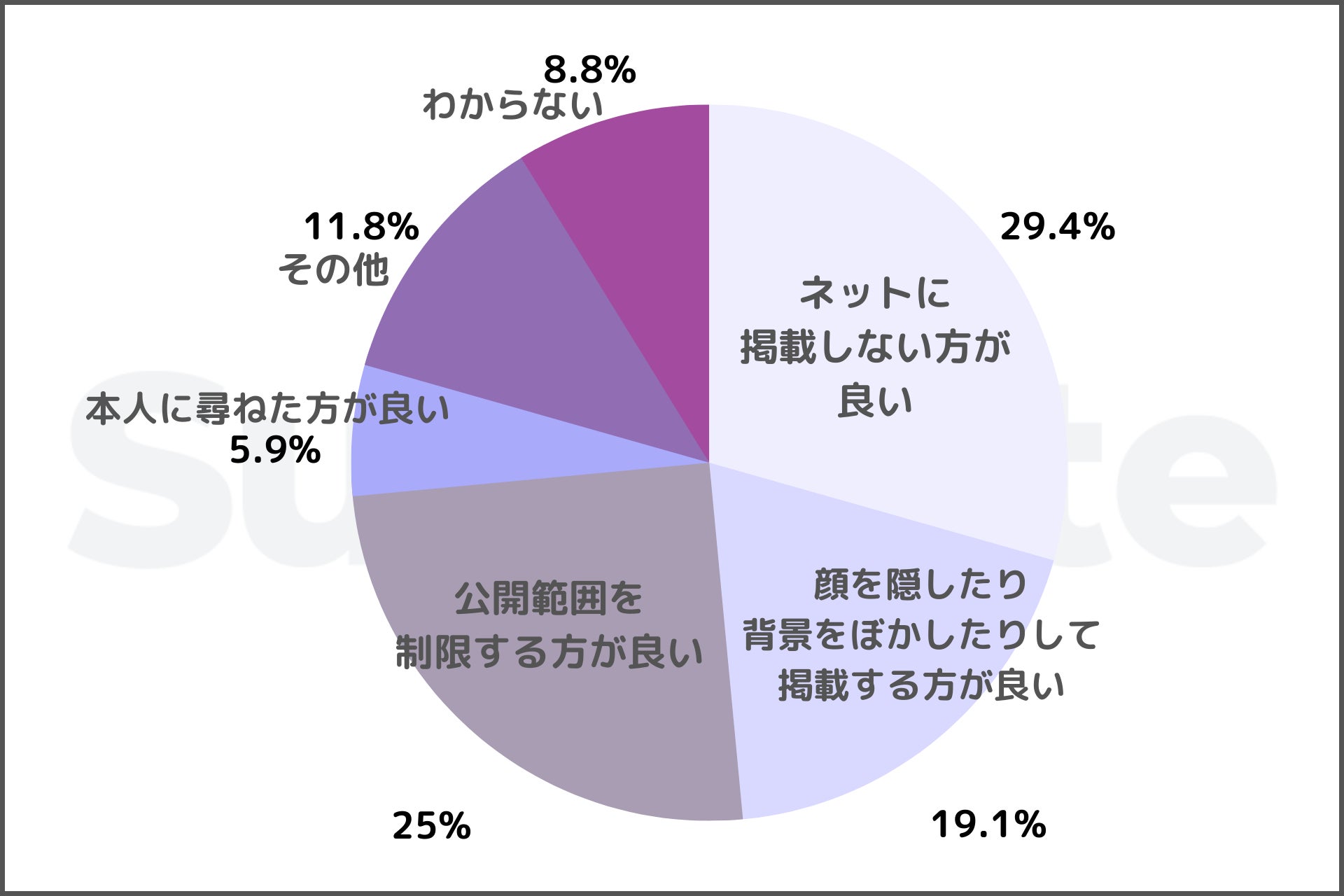 自分や他人の子どもが写っている写真や動画は家族や友人など公開範囲を制限する方が良い25%